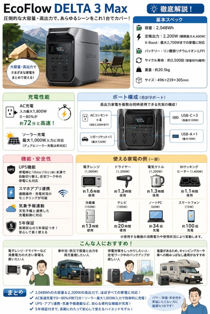 - 大容量でも軽さを重視したい人(Anker C1000 Gen 2より大容量・EcoFlow DELTA 3 Maxより軽量)